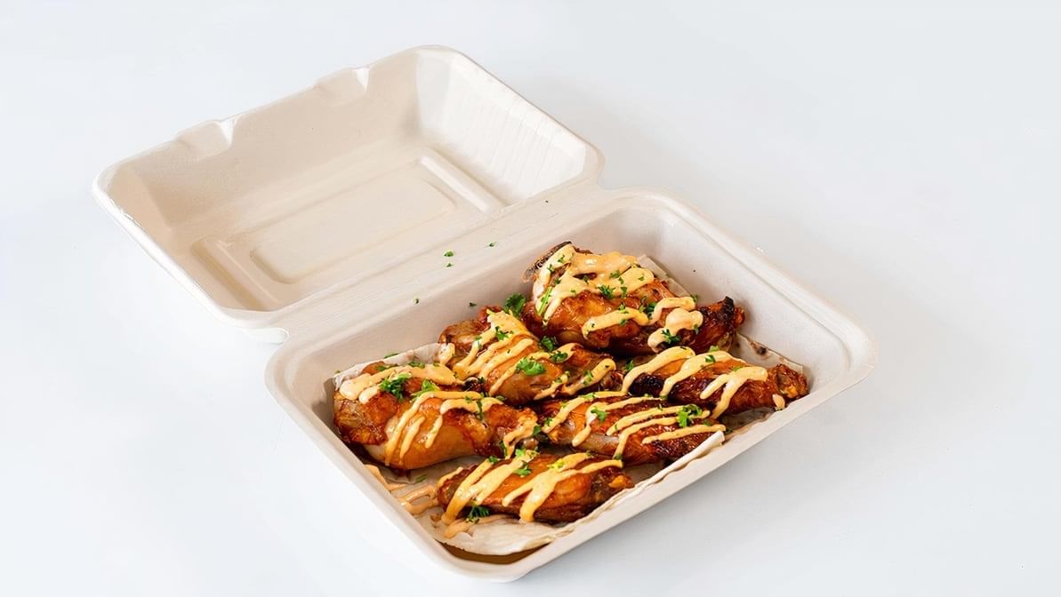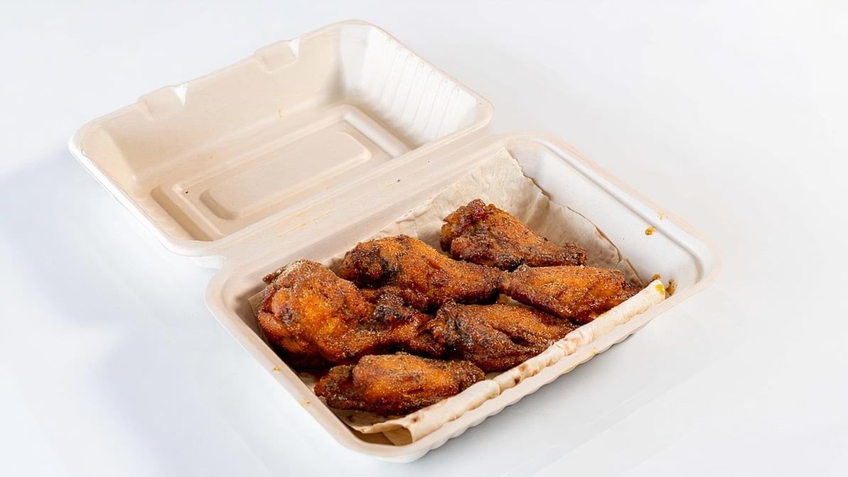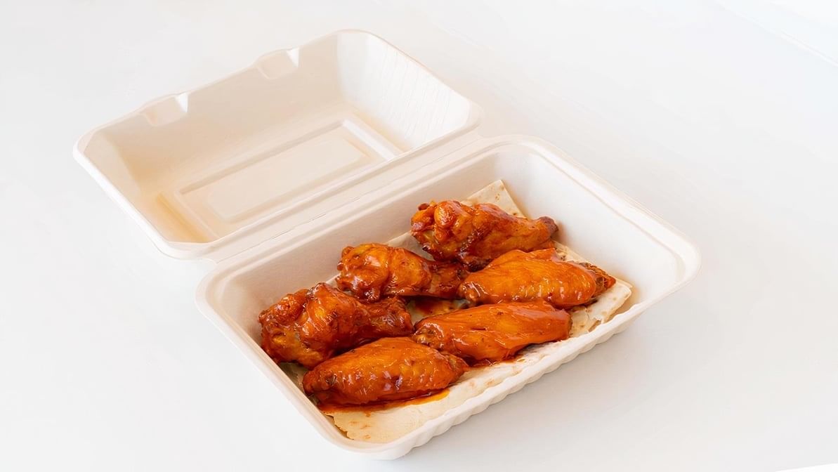 8 pcs. Jumbo Grilled Chicken Wings, Lavash underneath, tossed in House-Made Buffalo Sauce
