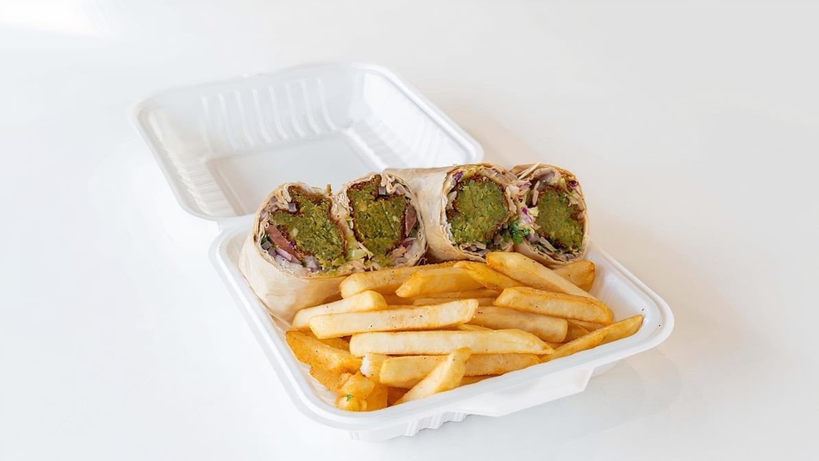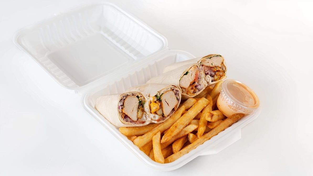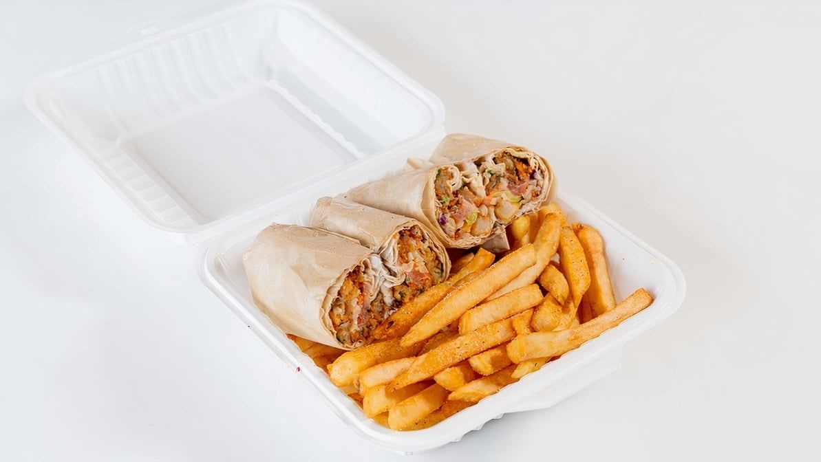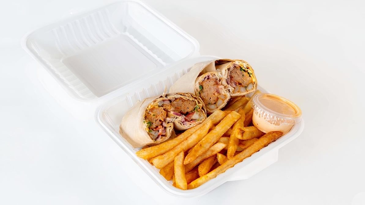 Two Wraps of your Choice served with French Fries, Tomatoes, Onion, Cilantro, Parsley, & Jonah's Magic Sauce