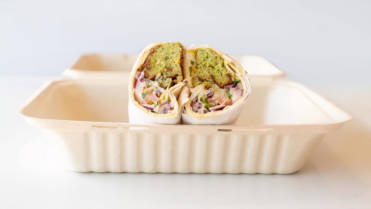 Two Falafel Wraps served with Cabbage Salad inside, Tomatoes, Onion, Cilantro, Parsley, & Jonah's Magic Sauce