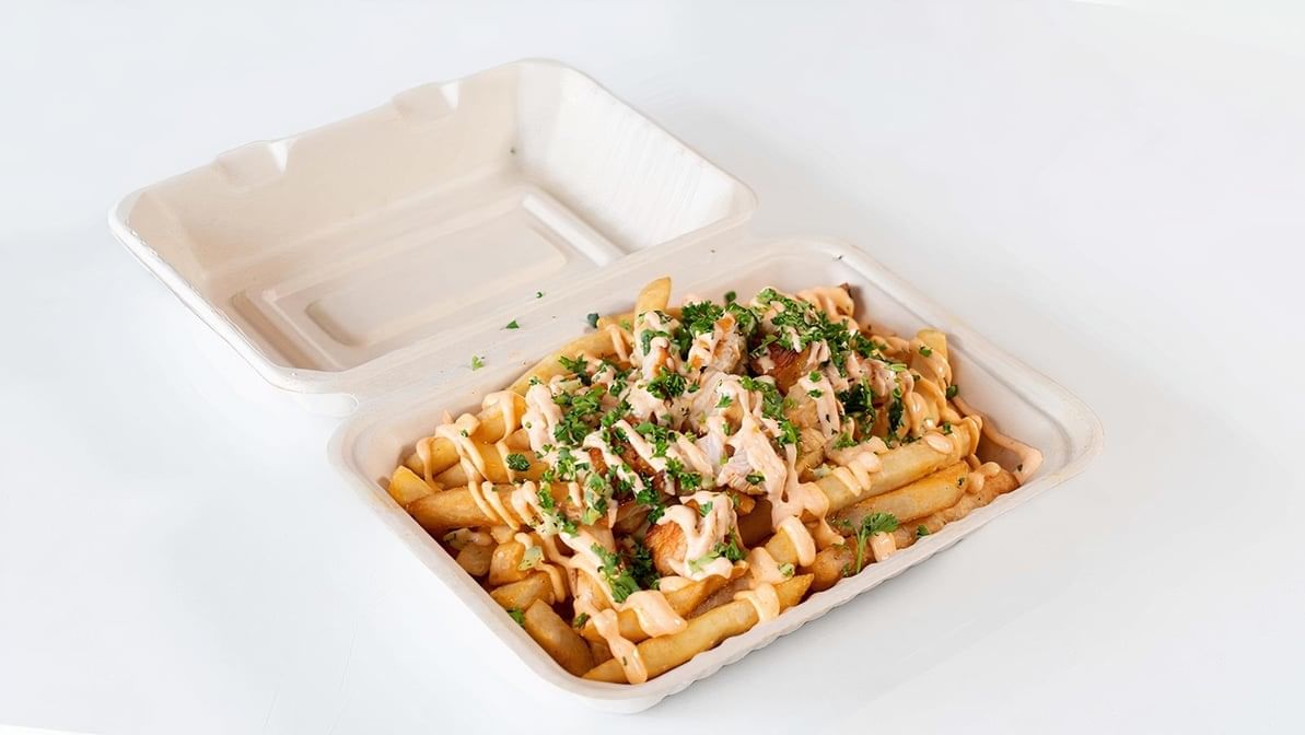 Two Chicken Breast Wraps served with French Fries, Tomatoes, Onion, Cilantro, Parsley, & Jonah's Magic Sauce