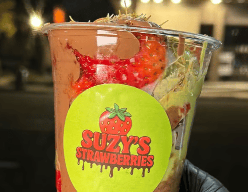Fresh strawberries dipped in rich chocolate, garnished with a sprinkle of finely shredded nuts