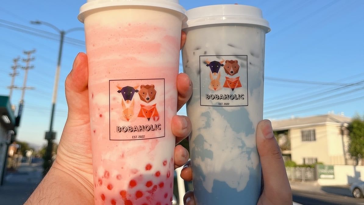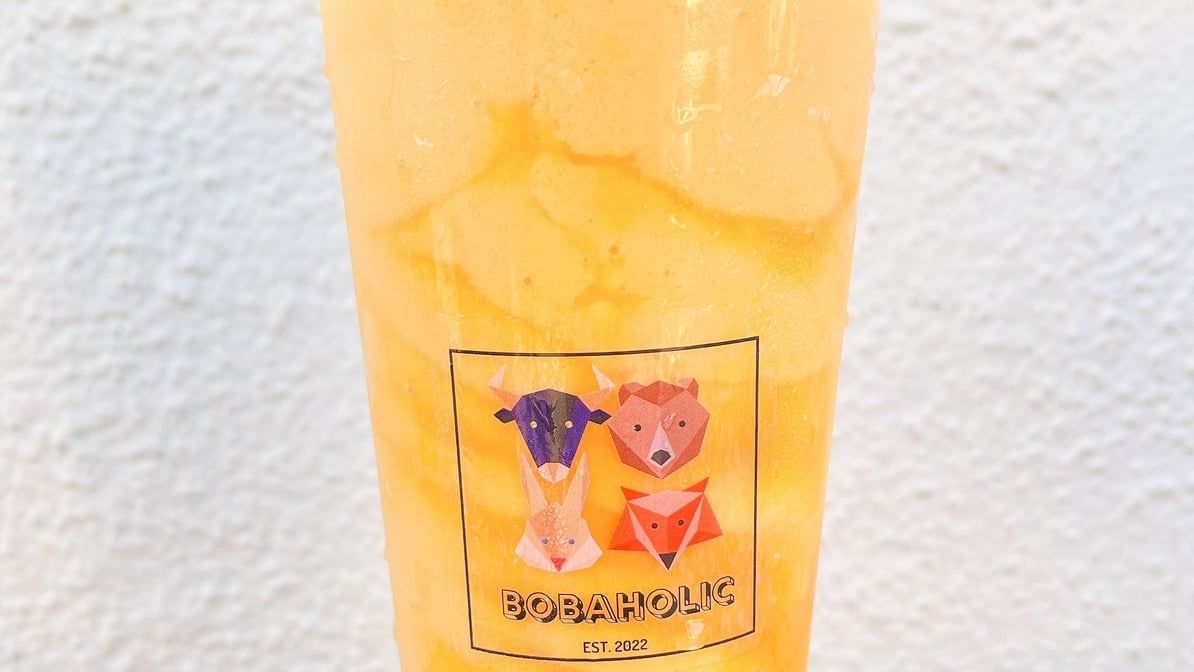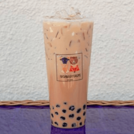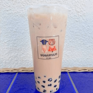Bobaholic's signature milk tea, smooth and creamy in a 24 oz cup.