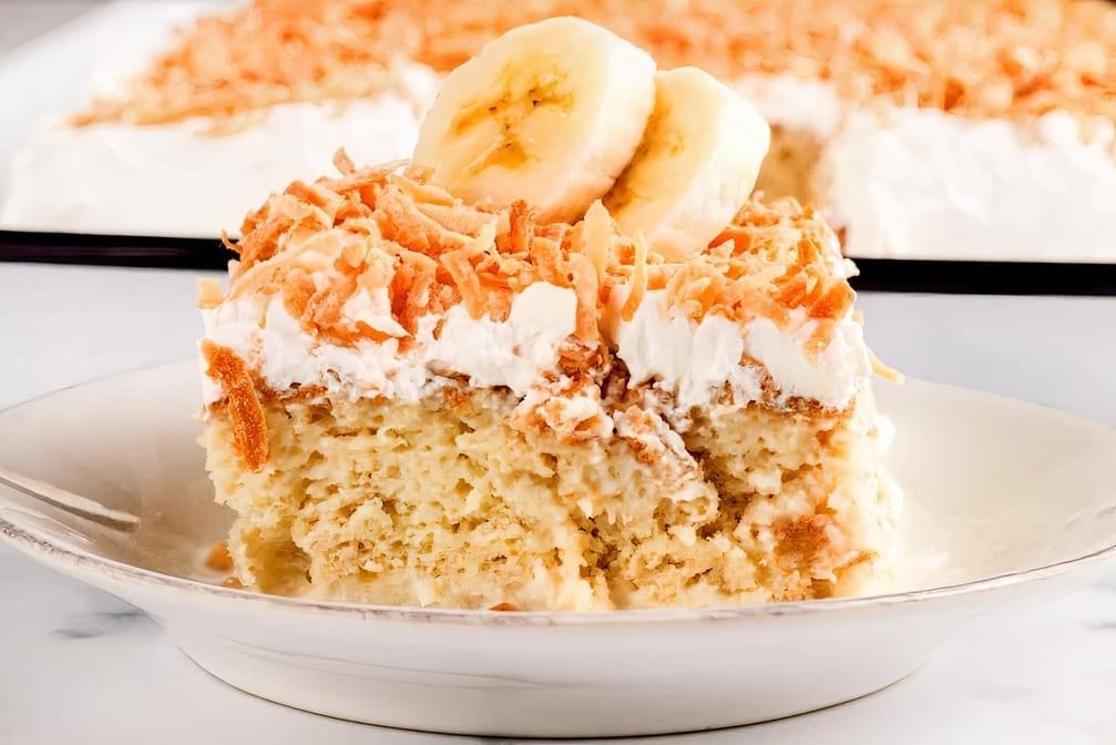 Moist banana pudding soaked in three types of milk.
