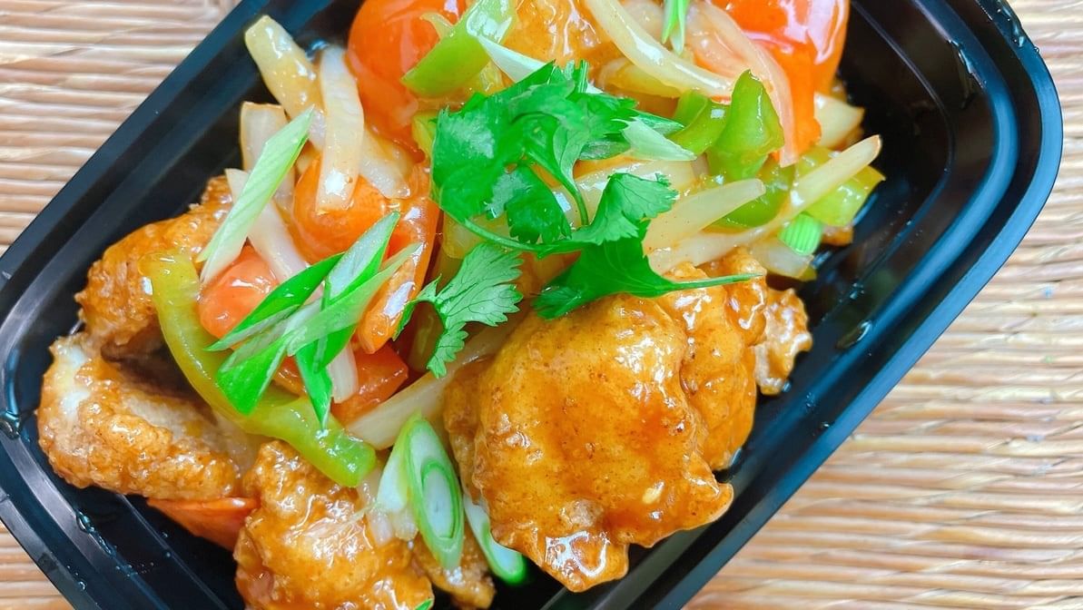 Crispy deep fried fillet sole fish topped with sweet & sour sauce
