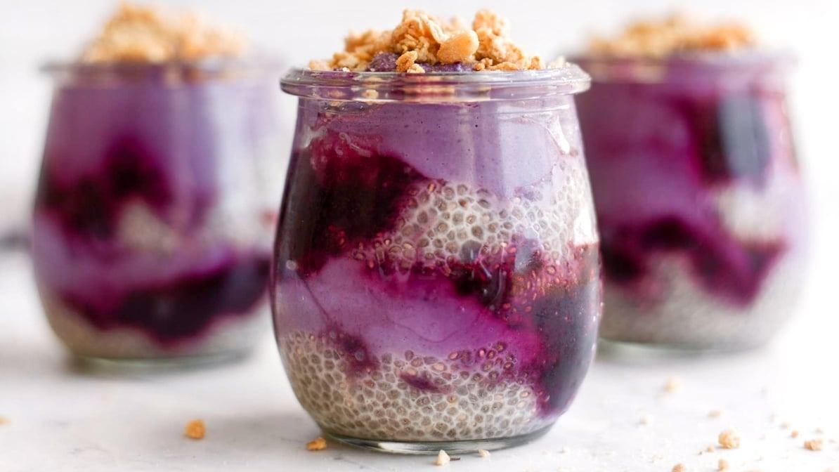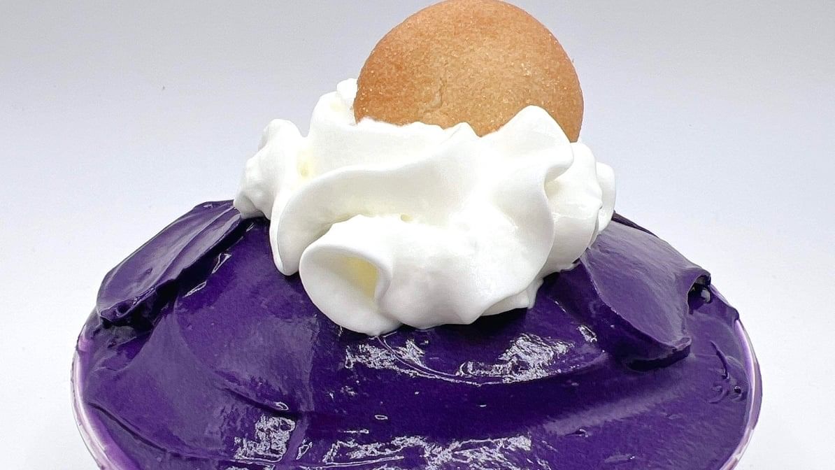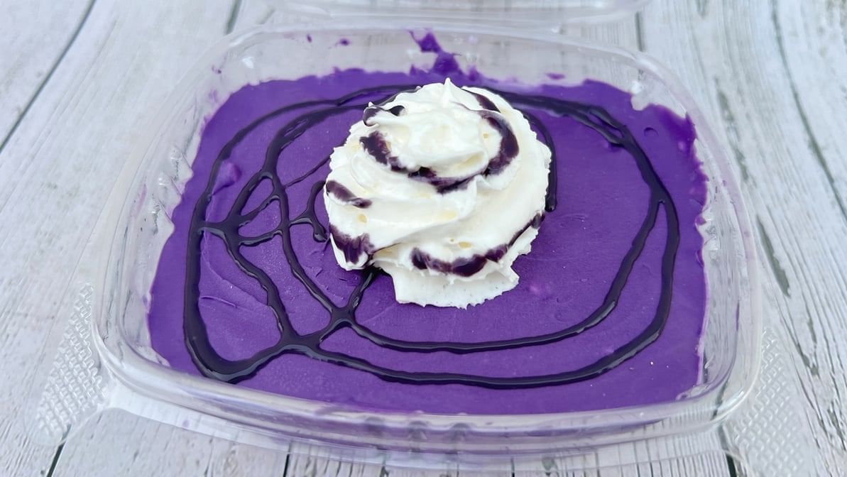 Rich and creamy pudding infused with ube and banana flavors.