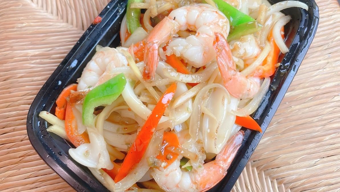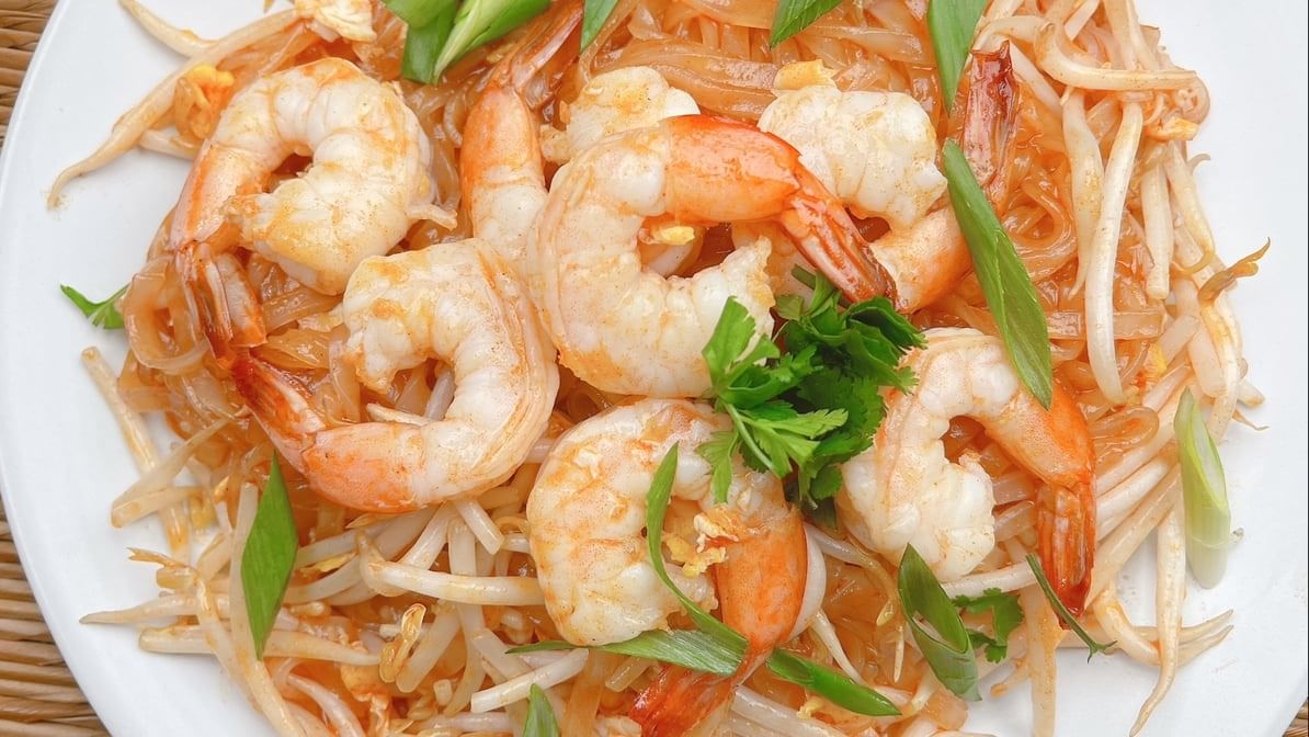 Rice noodle with combination of seafood & bean sprouts