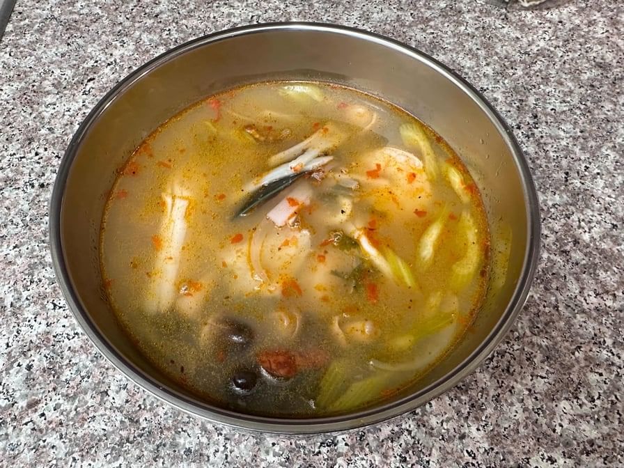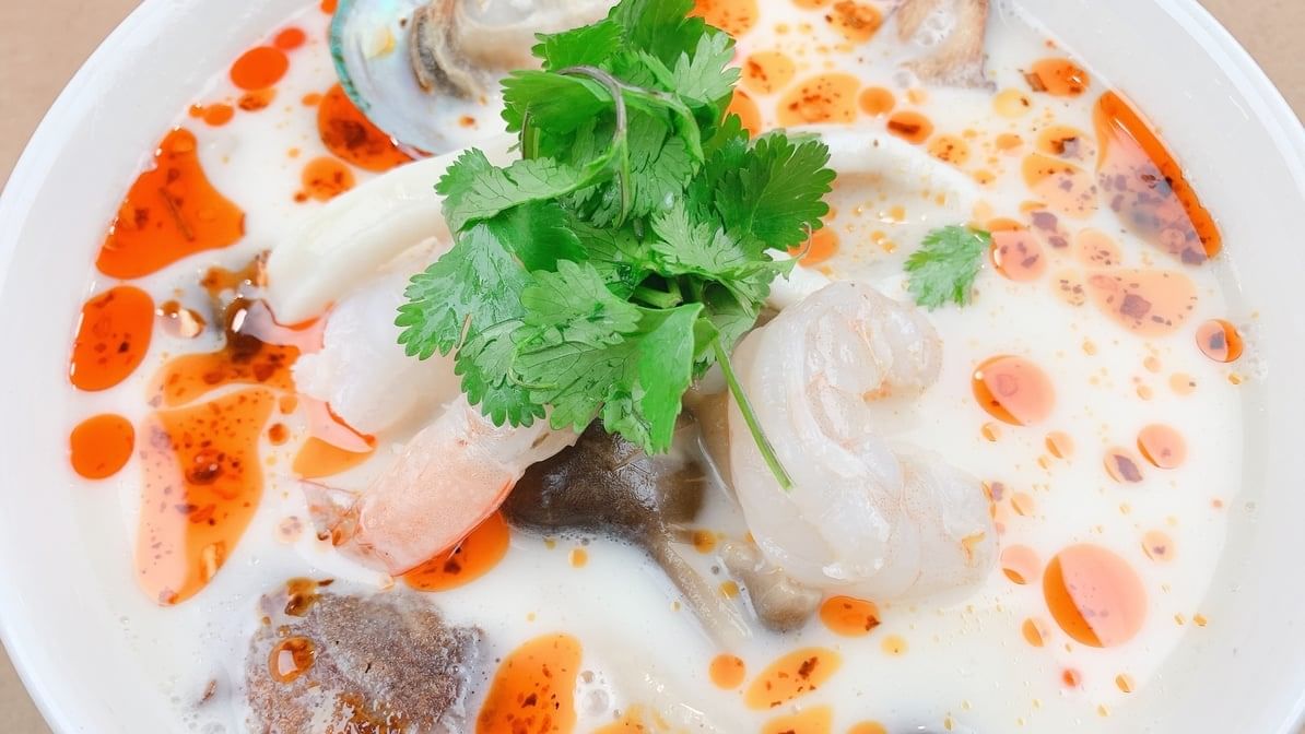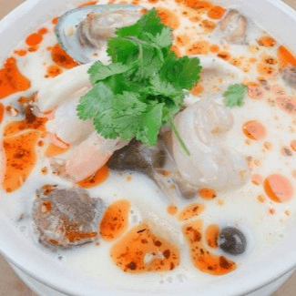 Spicy soup with a combination of seafood, spices, mushrooms, lime juice and Thai herb