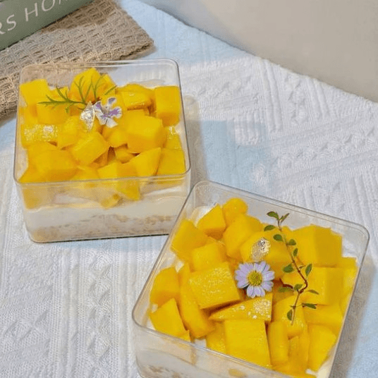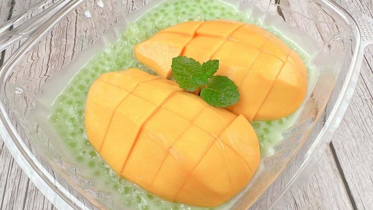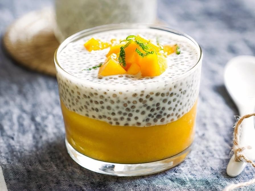 Creamy pudding infused with mango and coconut flavors.