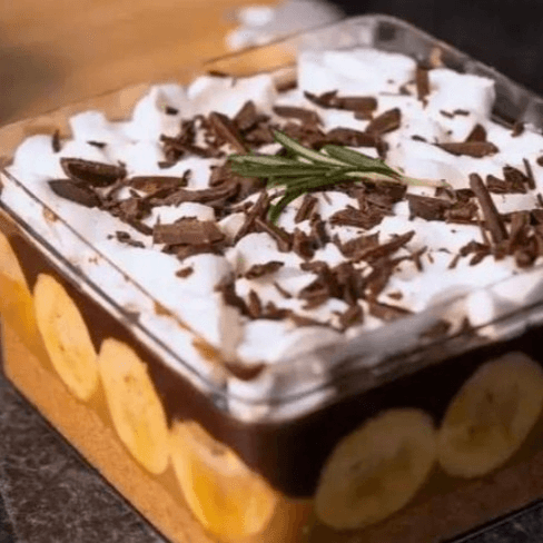 Moist banana pudding infused with rich chocolate and topped with a creamy tres leches sauce.