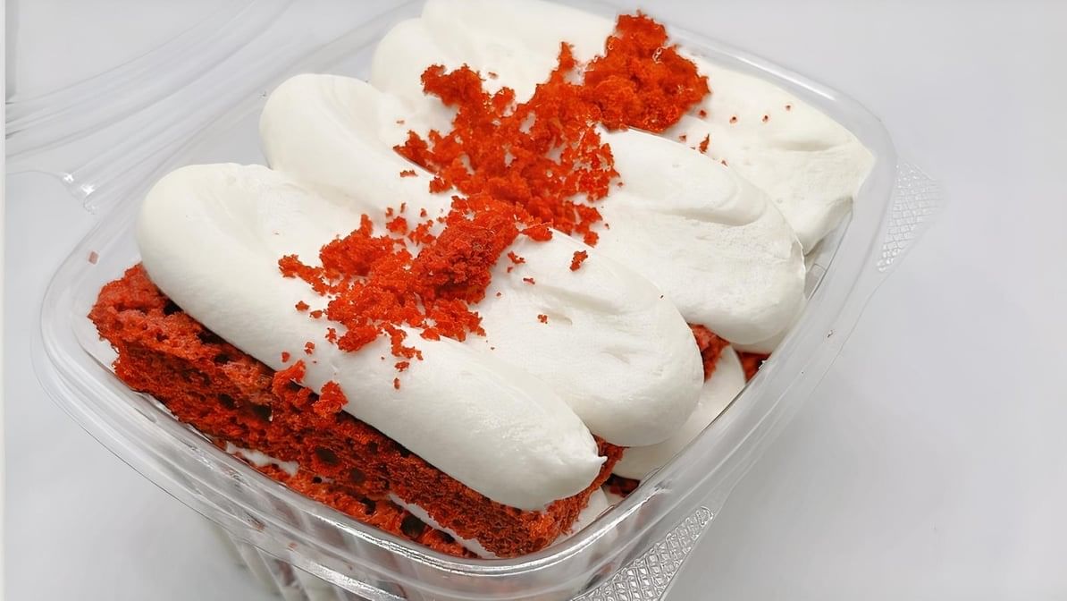 Moist red velvet cake smothered in rich cream cheese frosting.