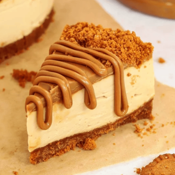 Creamy cheesecake layered with Biscoff spread and topped with crunchy Biscoff crumbs.