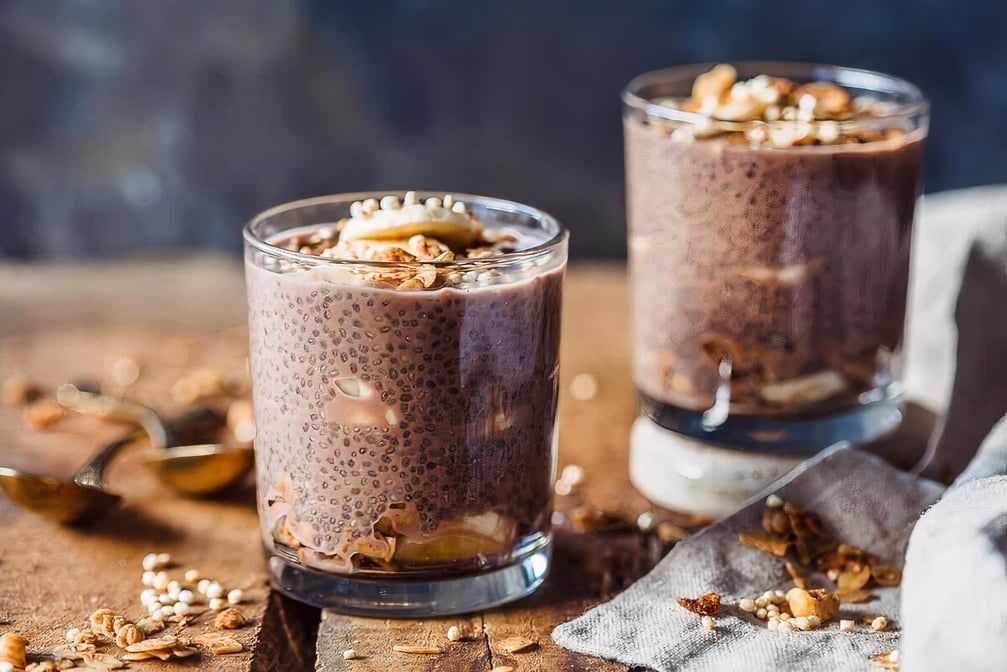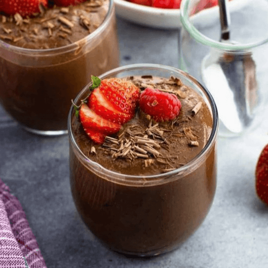 Rich and creamy pudding made with chia seeds and topped with fresh strawberries.