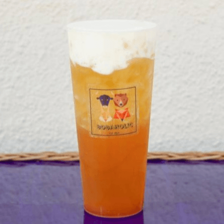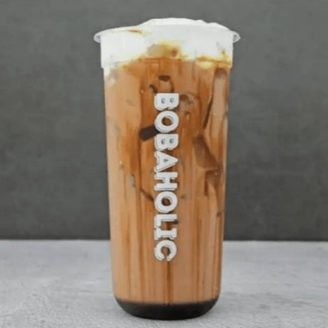 Bobaholic's strong, bold original milk tea with cheese foam.