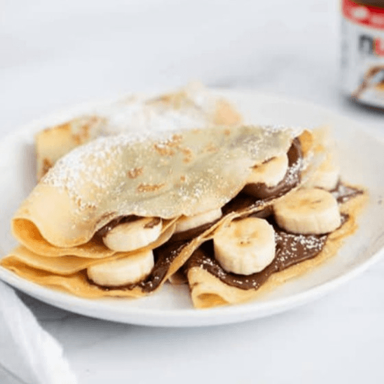 Warm roti filled with Nutella and banana for a sweet, dreamy treat.