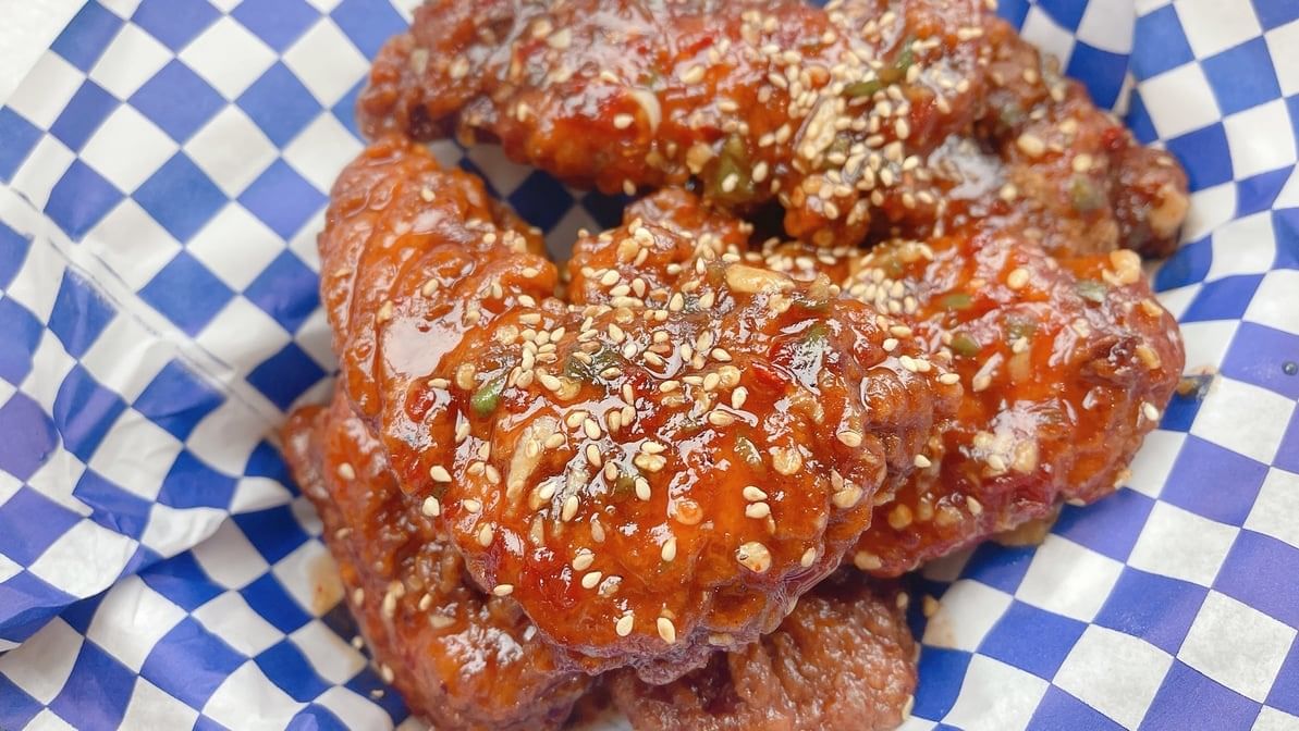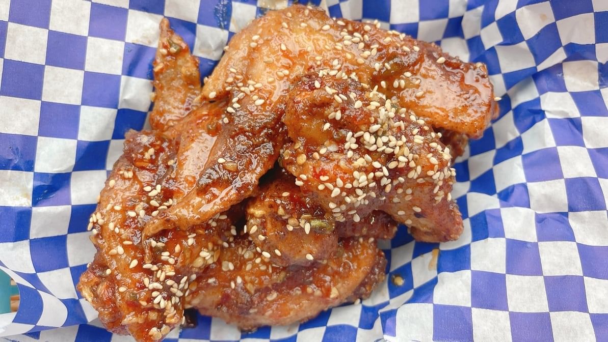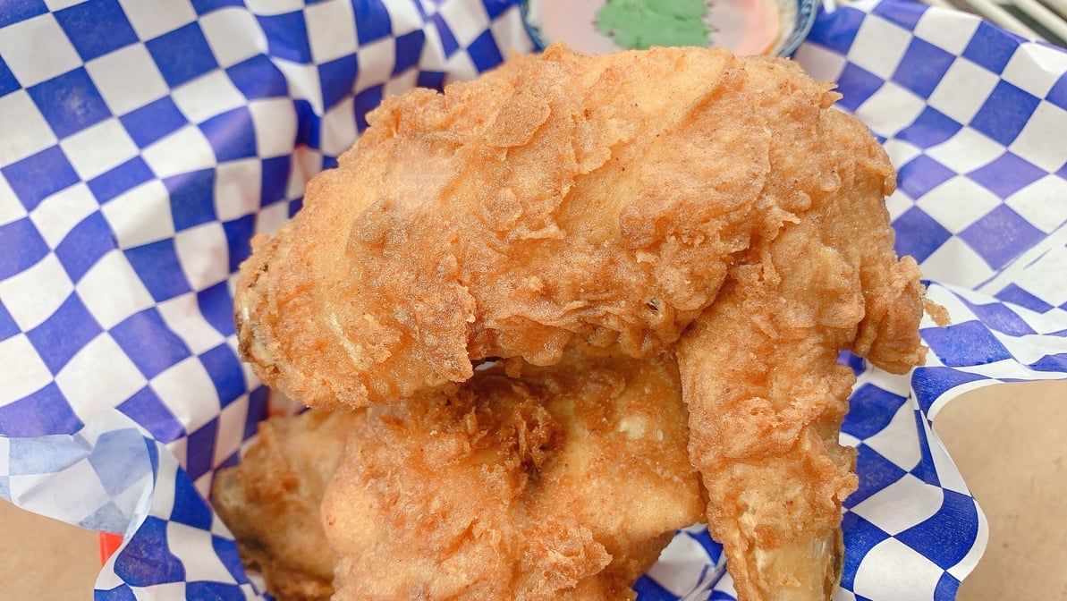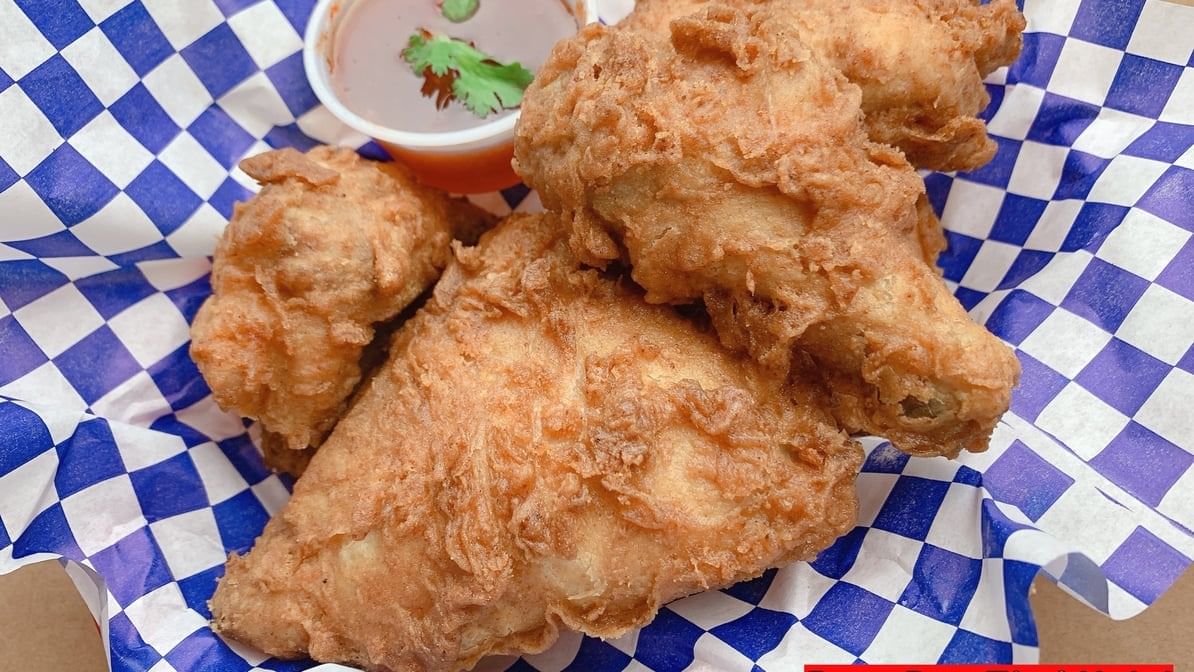Deep fried seasoned chicken wings served with Barn rau's sweet chili sauce