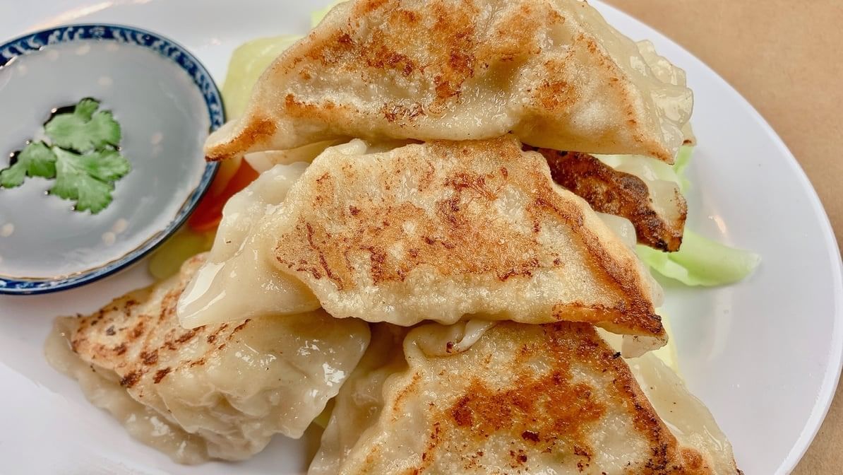 Crispy egg noodles topped with broccoli in soybean gravy