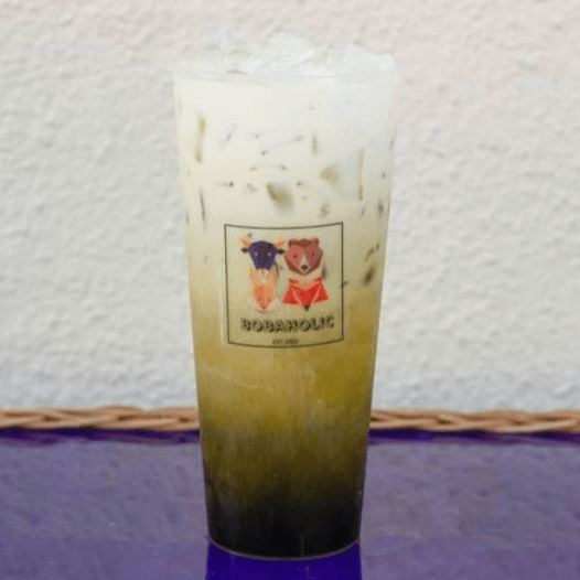 Bobaholic's strong , bold Matcha green milk tea + cheese foam large size only large size only