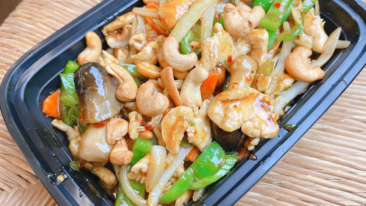 Spicy. Stir fried onions, bell pepper and cashew nuts with home made spices. Rice option available.