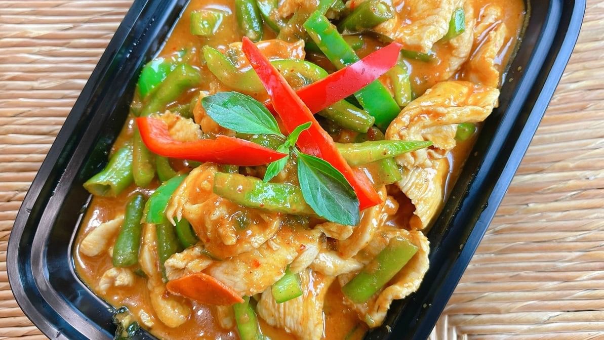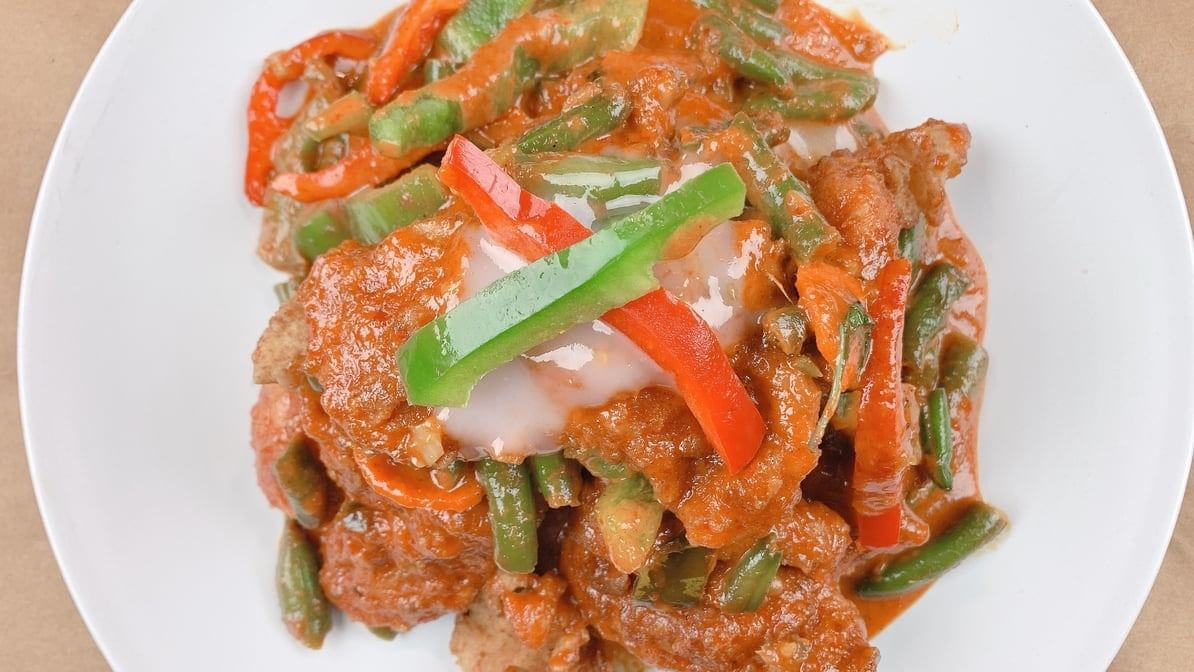 Stir fried spicy green bean with curry paste. Rice option available.