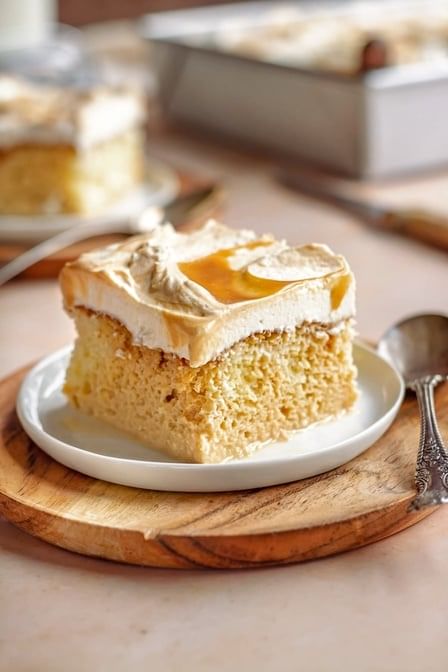 Moist ladyfingers soaked in three types of milk, layered with creamy sweetness.