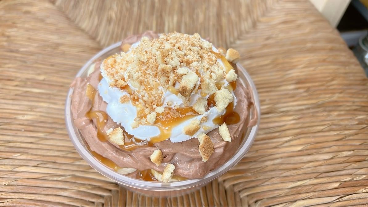Creamy pudding with banana and Oreo flavors.