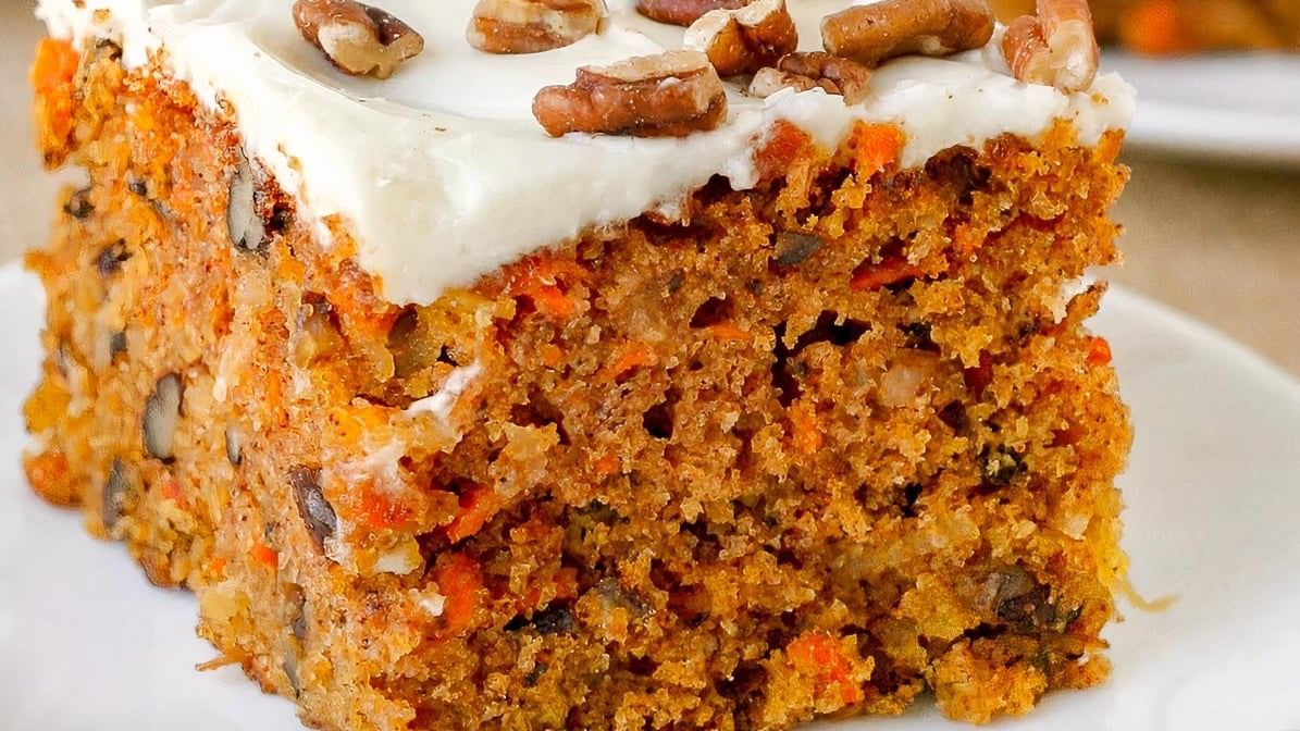 Moist carrot cake smothered in a tangy cream cheese frosting.
