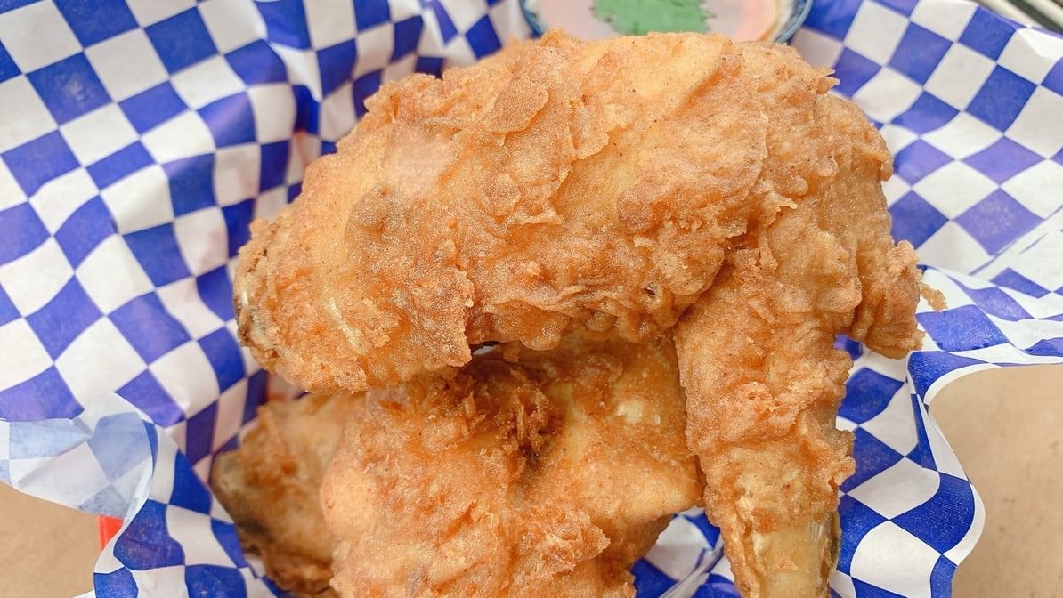 1 pound. Deep fried chicken wings & coated in our house spicy sauce
