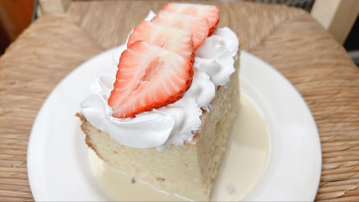 Moist sponge cake soaked in three types of milk, topped with a hint of cinnamon.