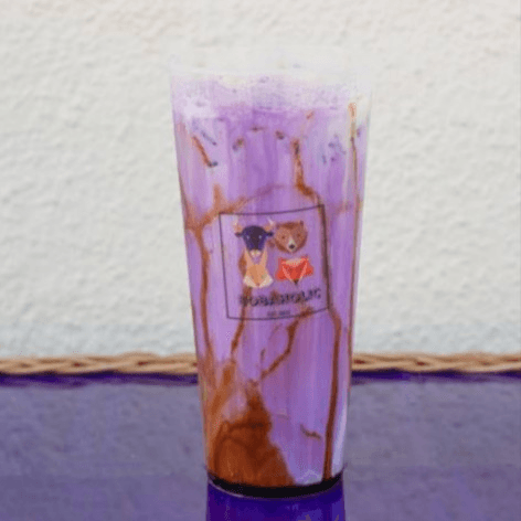 Butterfly pea milk tea + cheesecake foam. Large size only