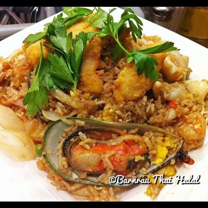 Deep fried seasoned half chicken, served with Barn Rau's sweet chili sauce