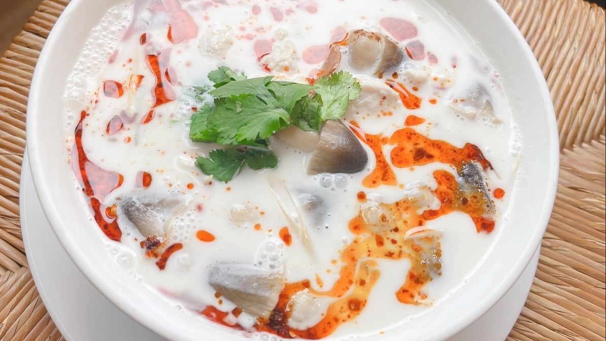 Coconut milk soup with chicken, Thai herb and mushrooms